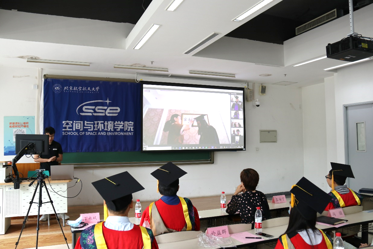 2022年6月18日上午9时,空间与环境学院在沙河校区J3-101举行2022届本研毕业典礼,并通过线上腾讯会议同步转播。空间与环境学院党委书记唐莉,院长曹晋滨,副院长王海宁,党委副书记丁永斌,空间科学系主任、183012班主任於益群,183011班主任张劲,专职辅导员冯骥,毕业班辅导员以及2022届本研毕业生和家长们参加典礼。会议由专职辅导员门雪洁主持。