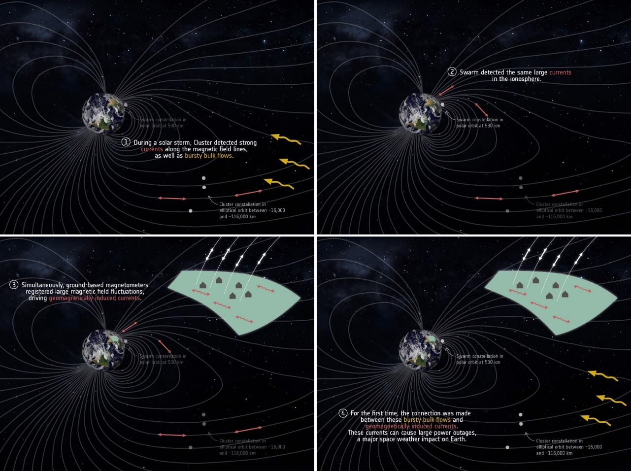 欧洲空间局报道链接:http://www.esa.int/Applications/Observing_the_Earth/Swarm/Swarm_and_Cluster_get_to_the_bottom_of_geomagnetic_storms