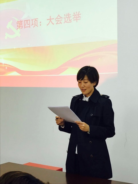 会上,空间与环境学院党总支唐莉书记作了学院工会筹备工作报告,唐莉书记首先对学校工会的支持、兄弟学院的帮助、学院教职工的辛勤工作表示感谢。随后,她从办理新进教师入会、工会成立之前过渡时期的工会工作、酝酿推荐工会和教代会委员候选人等三方面回顾了工会、教代会成立筹备过程。最后,唐书记表达了对学院做好工会工作的信心,她指出,在学校工会的大力支持下,在学院领导和同志们的共同参与和努力下,学院工会、教代会一定会发挥好与教职员工的桥梁和纽带作用,为职工办好事、办实事。