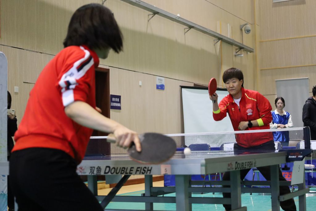 紧张激烈的个人冠军赛——近50名师生报名个人赛,参赛师生以球会友,直拍、横拍、扣球、旋转球、弧线球精彩频现,在掌声中单打男女冠军惊艳而生。