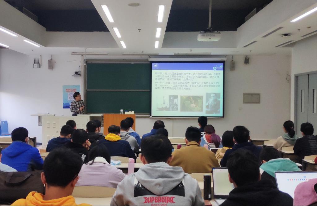 曹晋滨通过讲述中国人造卫星事业的倡导者和奠基人之一、“两弹一星”元勋赵九章先生的经历,向同学们生动展现了“热爱祖国、无私奉献,自力更生、艰苦奋斗,大力协同、勇于登攀”二十四个字的内涵。赵九章先生在幼时接触新文化书刊,激发强烈爱国热情,早年加入中国共产主义青年团,坚信只有中国共产党才能救中国,解放前夕与国民党政府斗智斗勇,拒绝迁往台湾,将宝贵的气象资料和科研器材保存下来,迎接新中国成立。